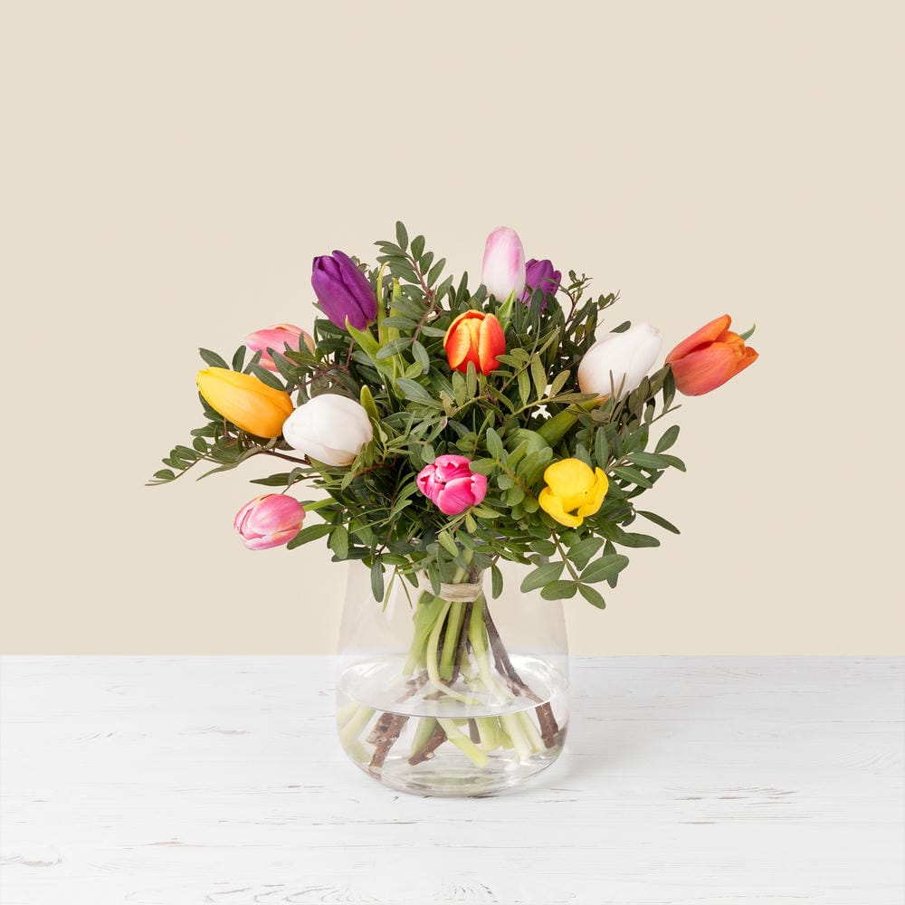 I tulipani meritano un capitolo a parte. Questi fiori, disponibili in una straordinaria varietà di colori, permettono di creare bouquet gioiosi e vivaci. Per San Valentino potete scegliere: